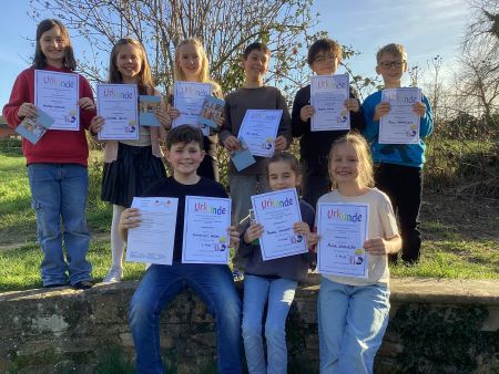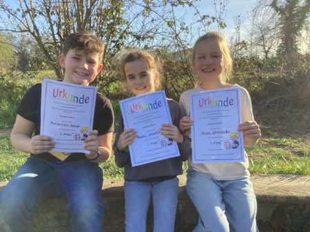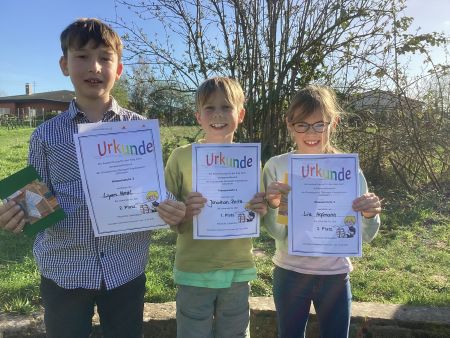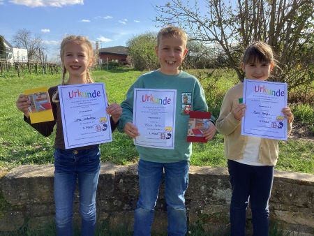 Schuljahr 2025 2026Lesewettbewerb 2026Am 12. März 2026 fand unser diesjähriger Lesewettbewerb statt. Die drei besten Leser aus allen zweiten, dritten und vierten Klassen beglückten uns mit interessanten und toll vorgetragenen Lesebeiträgen. Diese wurden nach den Kriterien Lesefluss, Lesefehler, Lautstärke, Betonung und Beachtung von Satzzeichen beurteilt. Die Jury aus ehemaligen Kolleginnen und Helfern der Schule hatte es sehr schwer, daraus die drei besten Leser des Jahrgangs zu bestimmen. Vielen Dank an die Jurymitglieder und herzlichen Glückwunsch an alle Lesesieger! 2. Klasse: Hundegeschichten von Henning Pawel